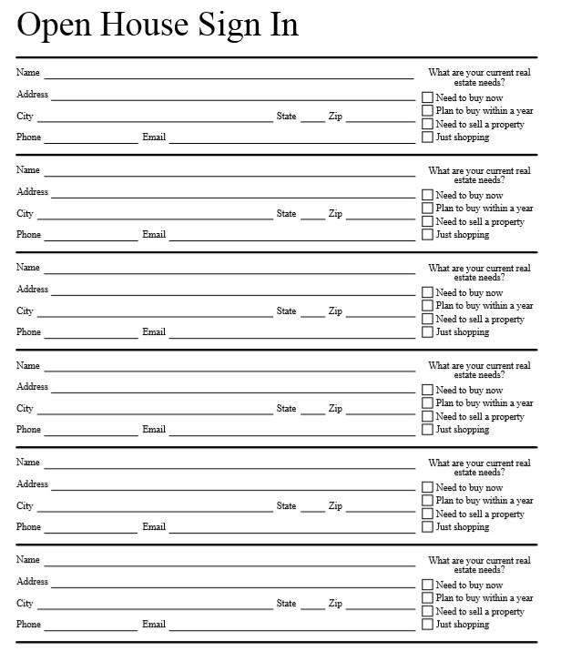 Open House Printable Sign In Sheet