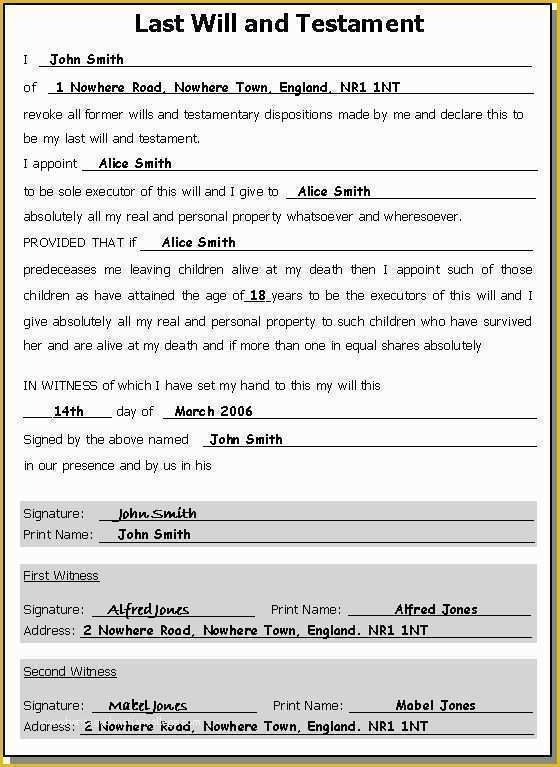 Printable Last Will And Testament Form