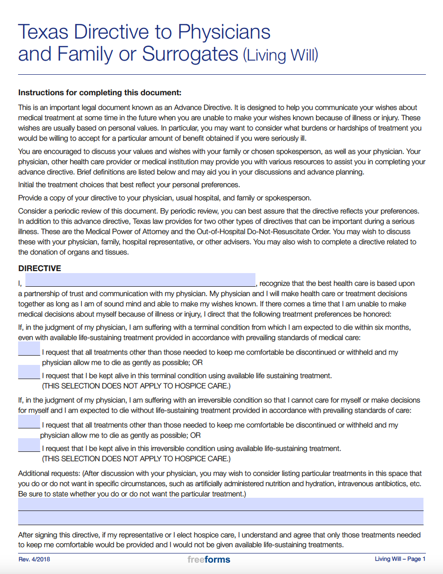 Printable Living Will Form Pdf