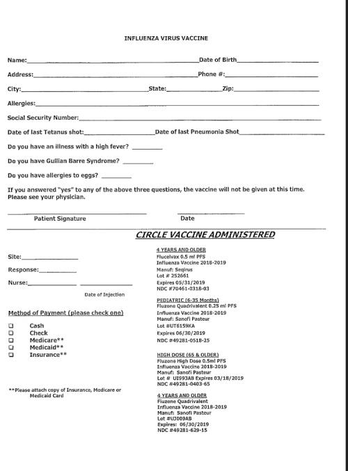 Printable Proof Of Flu Shot Form